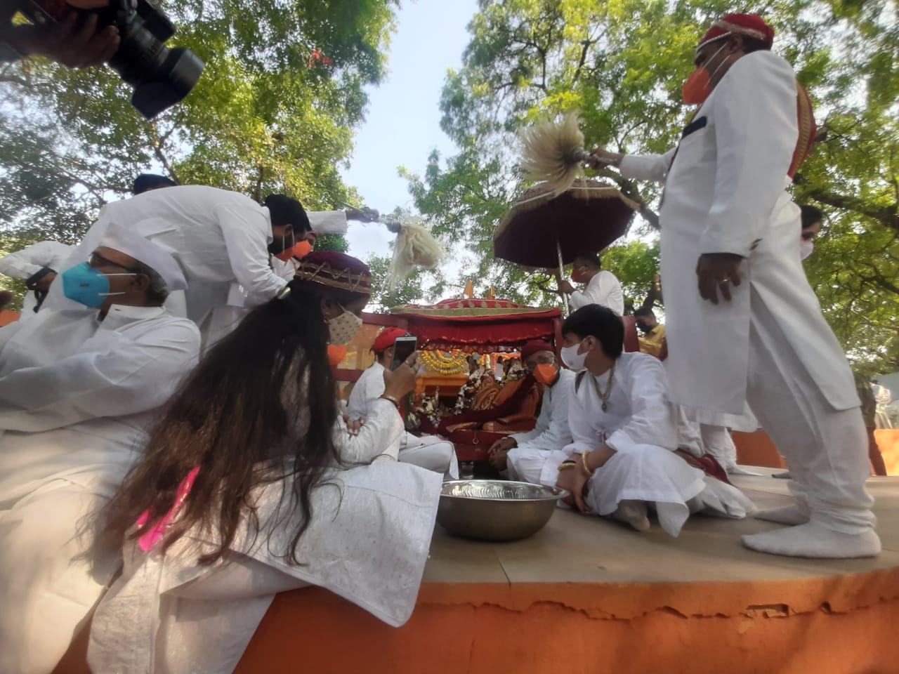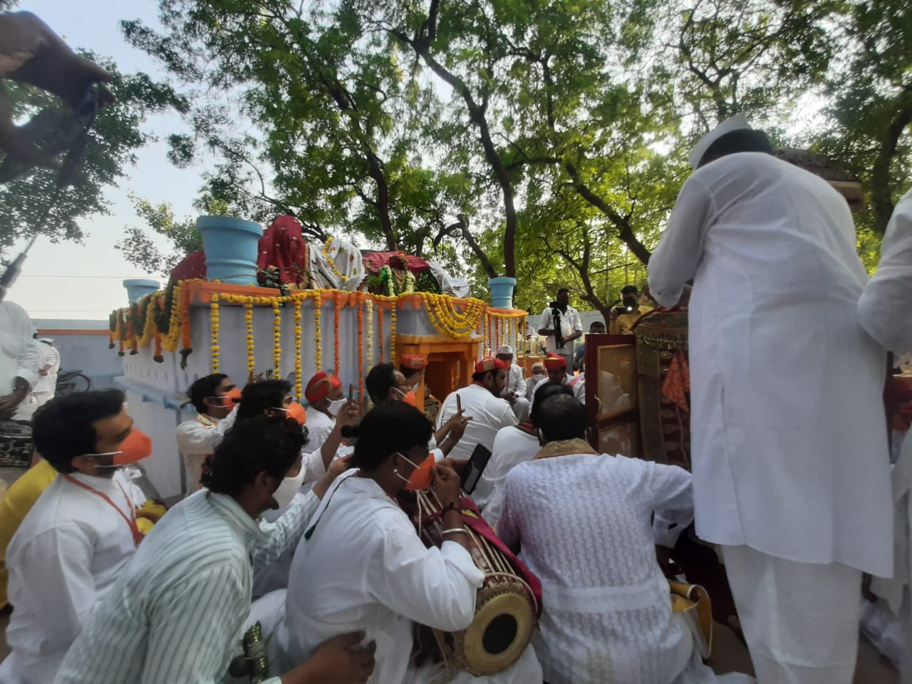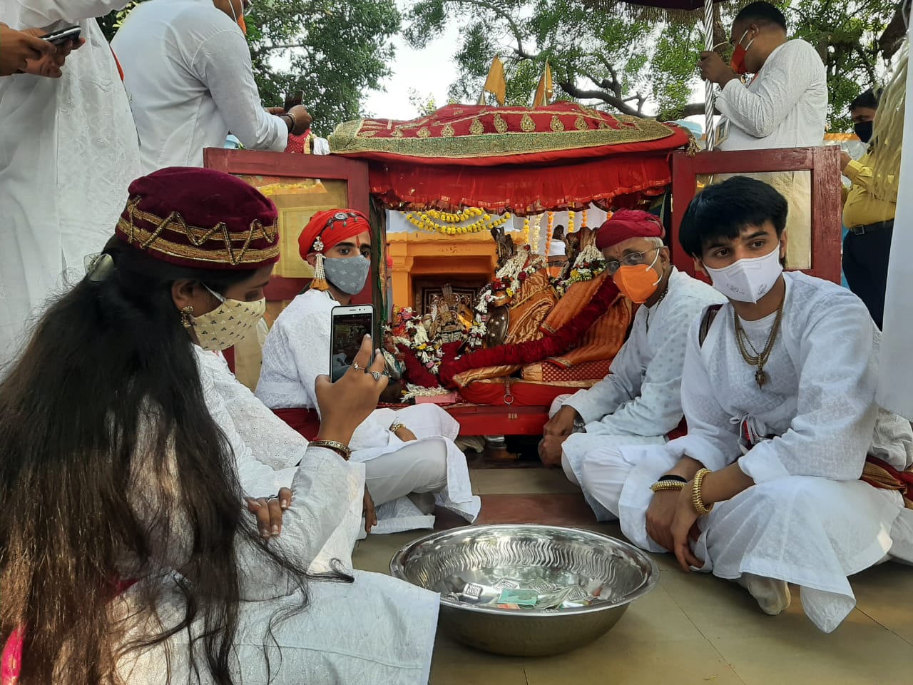 He said due to the pandemic God will leave in a magnificently decorated luxurious car at 2 pm to get married at Tulsiwadi. As per tradition, rituals including Chanla ritual have started in the temple since morning. Devotees are coming to pay homage as per the guidelines of Covid-19. About 50 members of the family will accompany the lord and return in the evening after completing the rituals.
