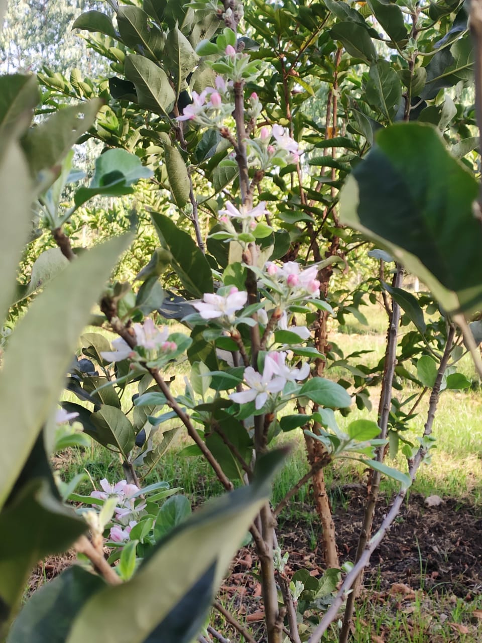 The apples of this variety, Harman 99, are yellow-pink in color and sweet in taste.