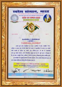 City based international artist, Rajendra P. Dindorkar received ‘Rabindranath Tagore Swadesh Ratna Sanman Award’ and ‘Two Gold Medals’ from Ayodhya, Uttar Pradesh. He received the award among 228 entries all across India in the painting category.